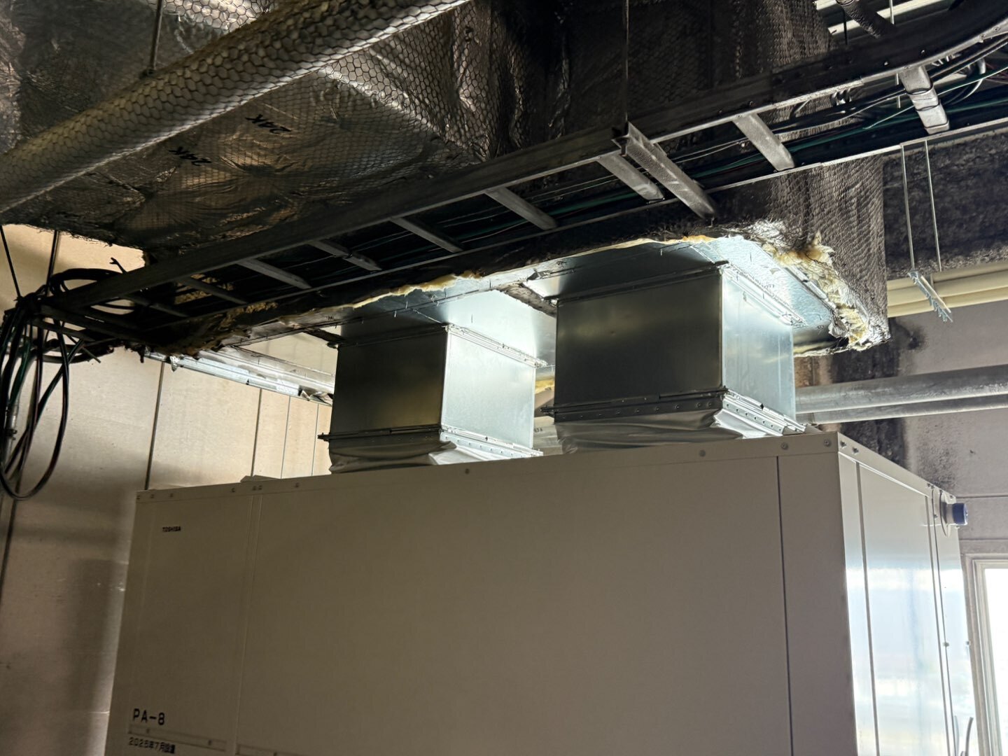 商業施設 ダクト工事 宮城県多賀城市 商業施設 空調ダクト製作取付け工事 パッケージエアコンの更新工事に伴うダクト工事です。パッケージエアコンが更新のためダクトの取出し位置が変わるため、既設のダクト等撤去したあと開口部は鉄板で塞いで新たな取出し位置に合わせて上のチャンバーボックスに開口して取付ました。 場所 宮城県多賀城市 1 / 1 前の施工事例 商業施設 岩手県盛岡市 商業施設 排煙ダクト製作取付工事 次の施工事例 商業施設 宮城県仙台市泉区 商業施設 排煙ダクト増設工事